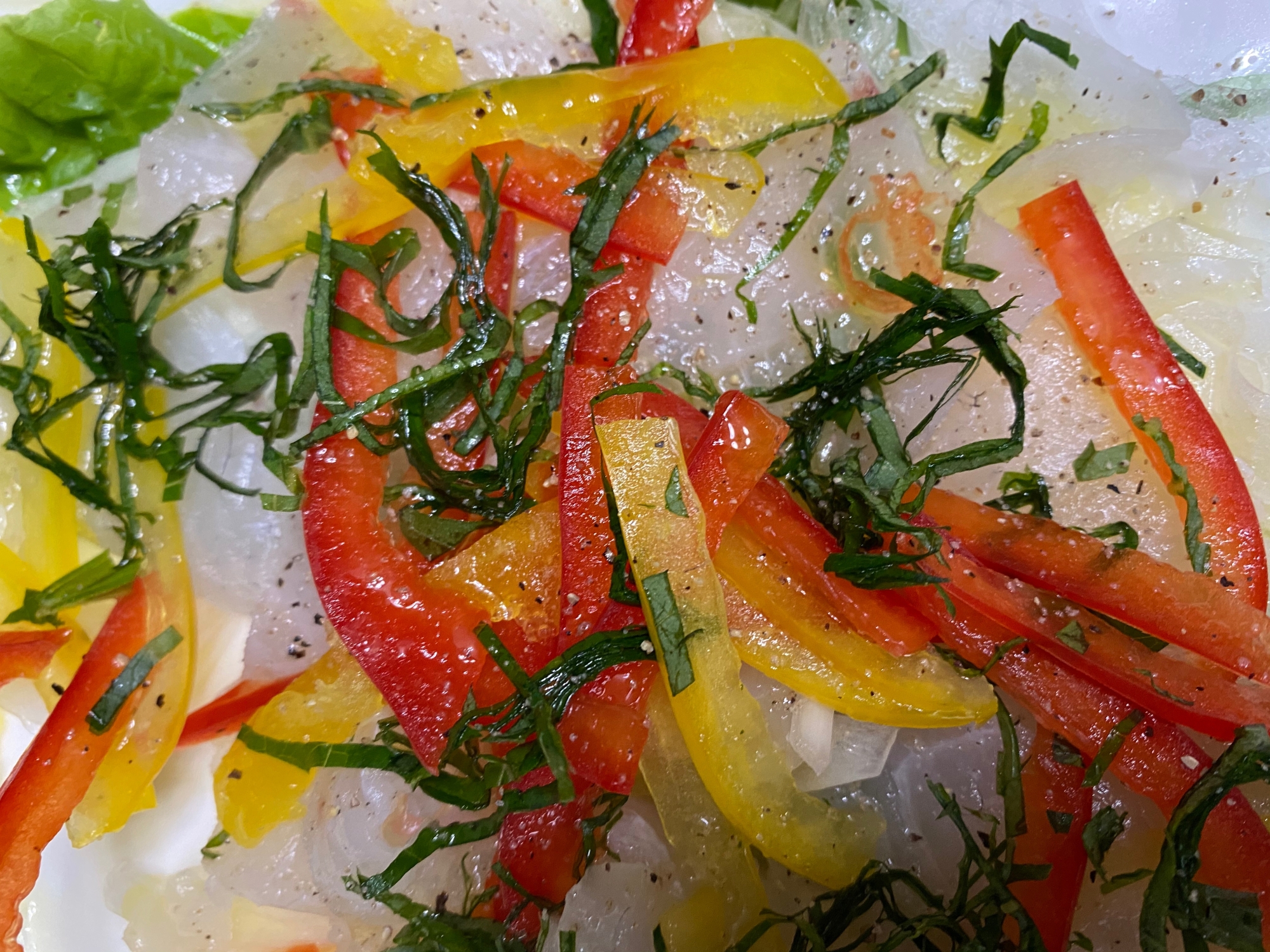 鯛のカルパッチョサラダ- 268 Likes, 13 Comments タカ (オフィスタカヤマ) (@officetakayama) on Instagram “野菜をモリモリ🥬鯛とタコのカルパッチョ です🥰 たくさん野菜を食べたいときによく作り セリと鯛でサラダにしてみます。 こちらのツイートを参考にしました。 鯛とクレソンのサラダ鯛の柵は薄切りにして、両面に薄く塩をして15分でも置く。 クレソンは食べやす